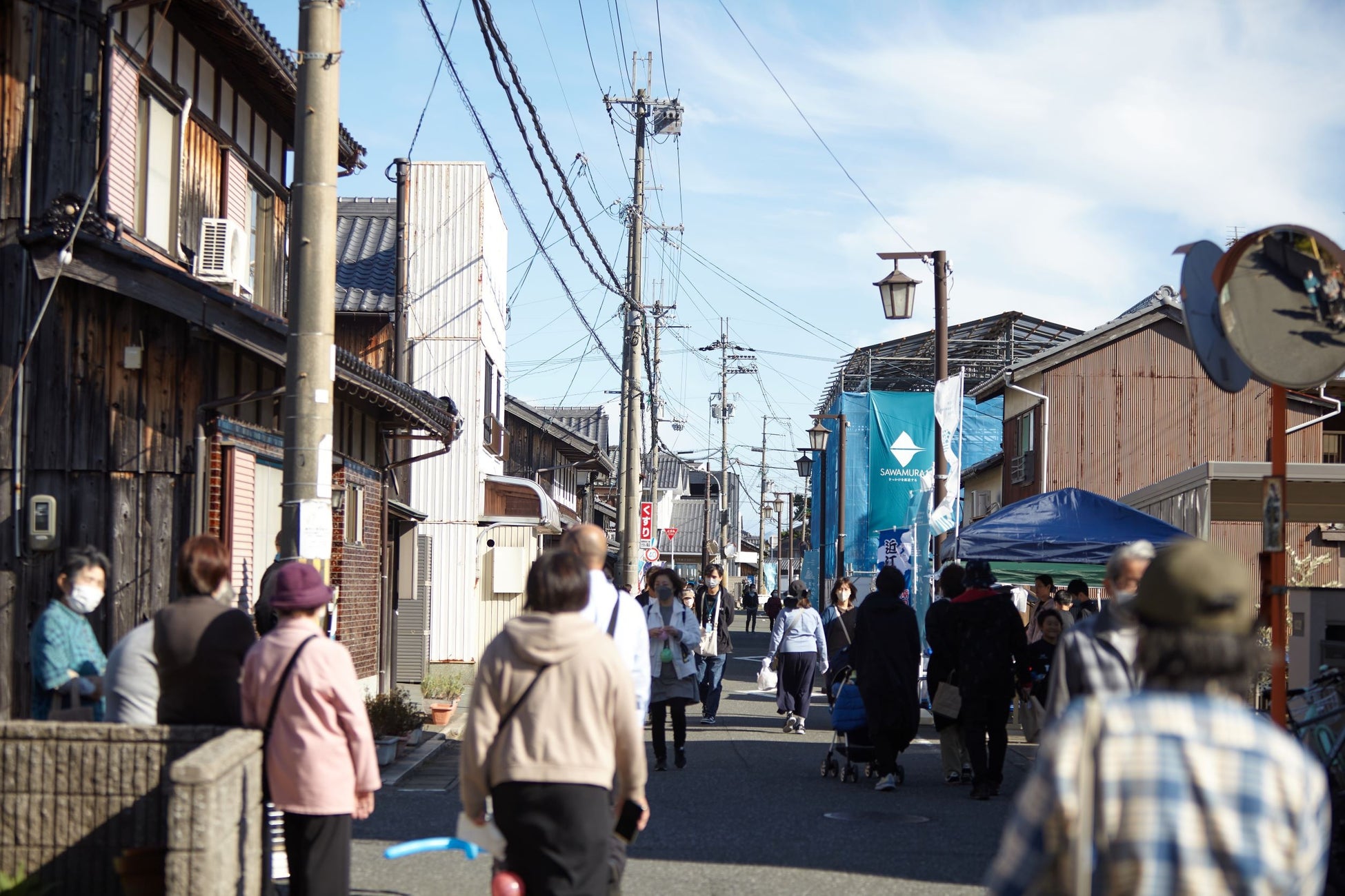 当社が本社を構える旧大溝地区(高島市勝野)は、大溝城跡地や築200年を超える旧商家が現存する文化的にも魅力的なまち。一方で近年、労働人口流出や空き家増加が問題視されています。そこで、地域の魅力を発信したいと考える住民や地元まちづくり団体が集まり、まちの魅力を発信する『大溝まちづくりマルシェ』を企画。当社もその想いに共感し、多くの来場者が見込める『SAWAMURAマルシェ』との同日開催を提案。近隣住民の方々の来場のきっかけづくりを行いました。