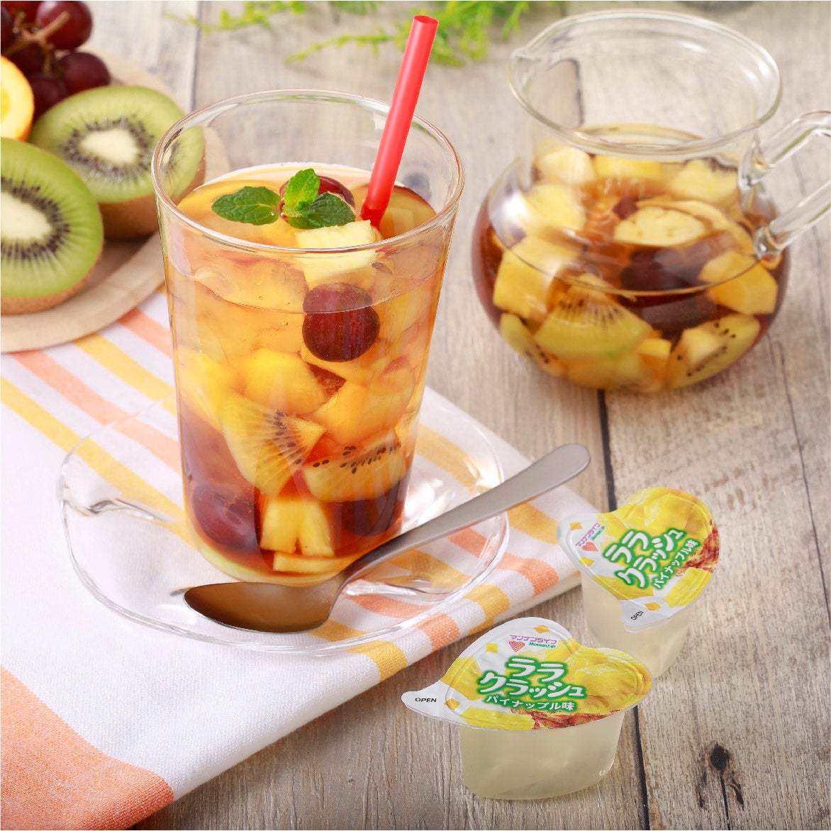 太陽の日差しをたくさん浴びたような甘酸っぱくジューシーなパイナップル味です。芳醇な香りと爽やかな酸味のパイナップルジュレとこんにゃく独特のつぶつぶ食感がマッチし、一口食べるとお口の中にジューシーなパイナップルの香りが広がります。冷やして食べるとより美味しくお召し上がりいただけます。