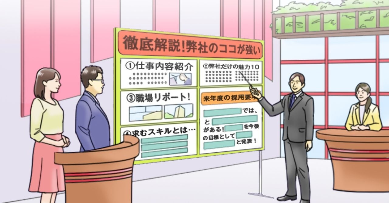 当プランの核となるのは、経済情報番組の構成作家が作った構成台本をもとに、丁寧な取材を重ねて制作していく「オリジナルの会社説明会動画」です。この動画を用いることで、「今の会社説明会では、“社風を感じてもらえない”、“ 仕事の魅力が理解されない”」という課題感を抱える企業のご要望にお応えしていきます。