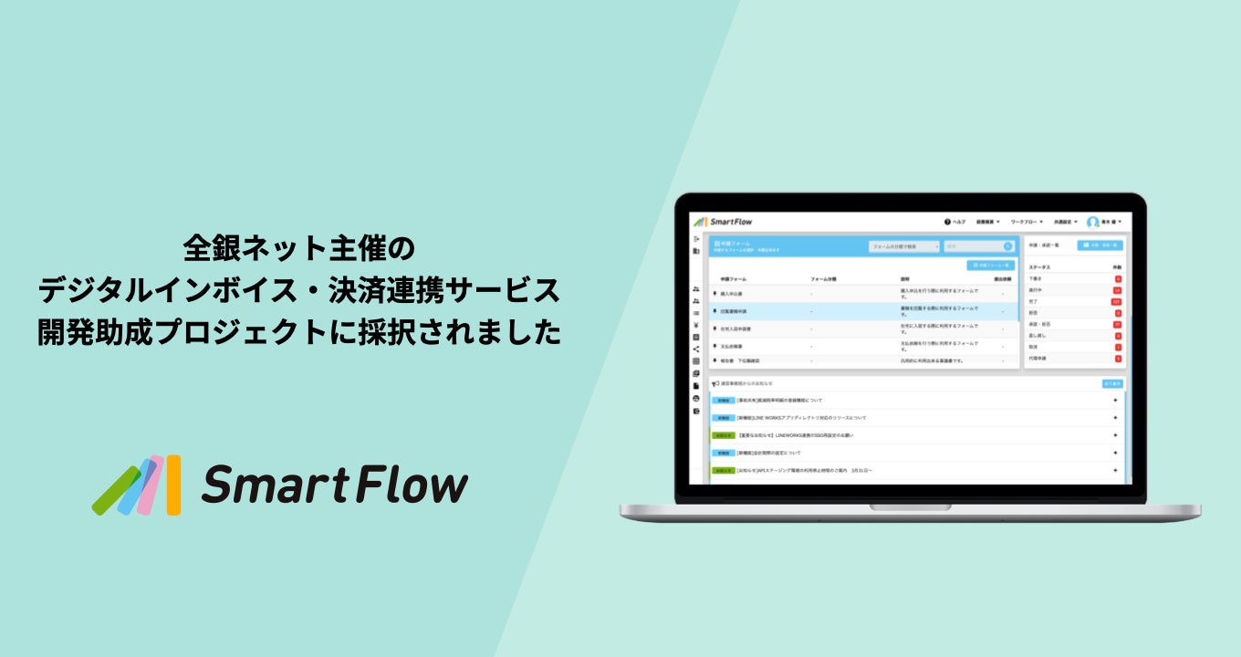 SmartFlowが全銀ネット主催のデジタルインボイス・決済連携サービス開発助成プロジェクトに採択されました!