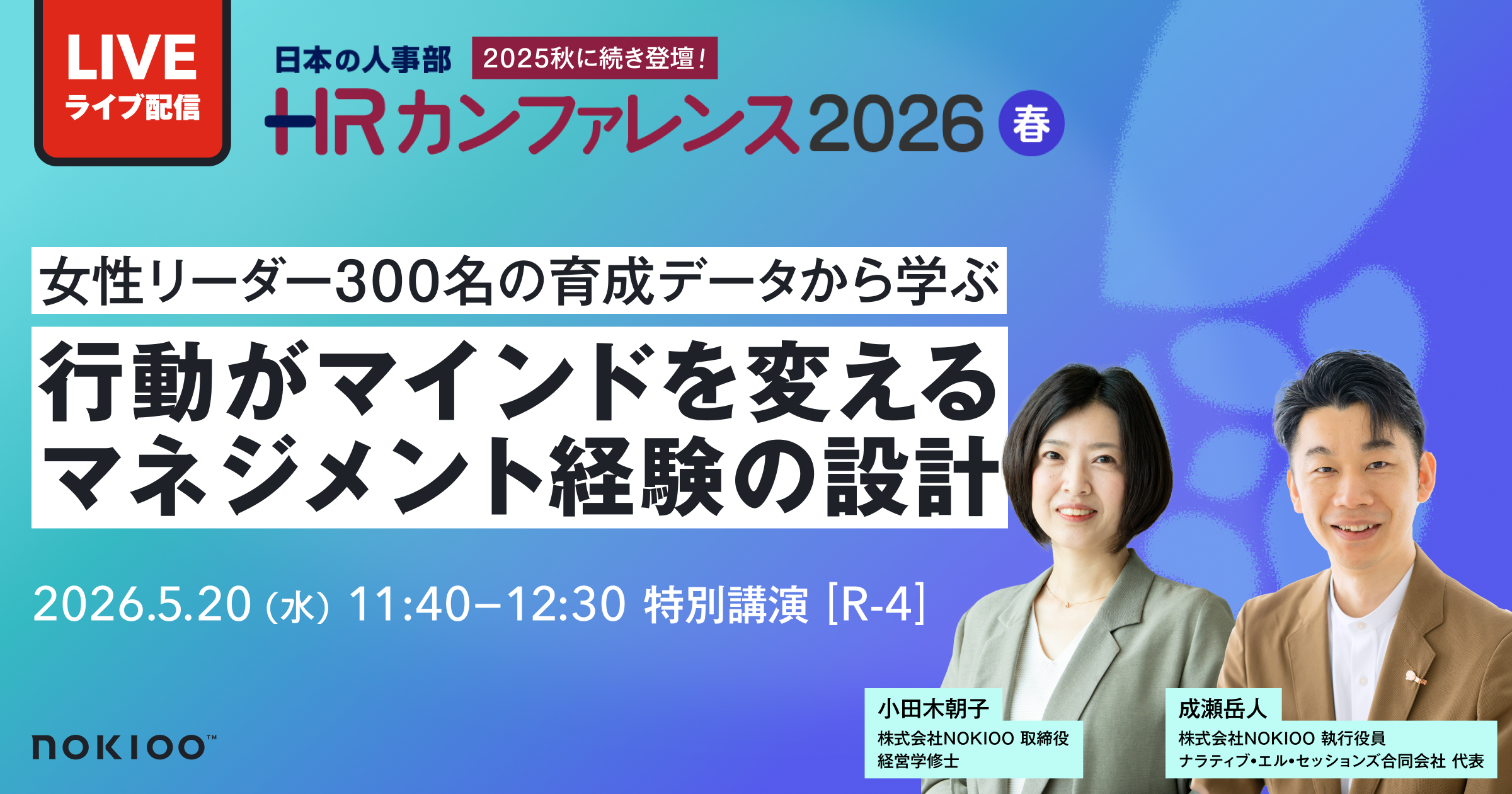 5月20日(水)|日本の人事部主催「HRカンファレンス2026-春-」にNOKIOOが登壇!女性リーダー300名の育成データから「行動がマインドを変える、マネジメント経験の設計」を学ぶ