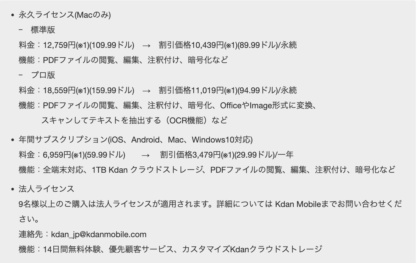 9名様以上のご購入は法人ライセンスが適用されます。詳細については Kdan Mobileまでお問い合わせください。 連絡先:kdan_jp@kdanmobile.com
