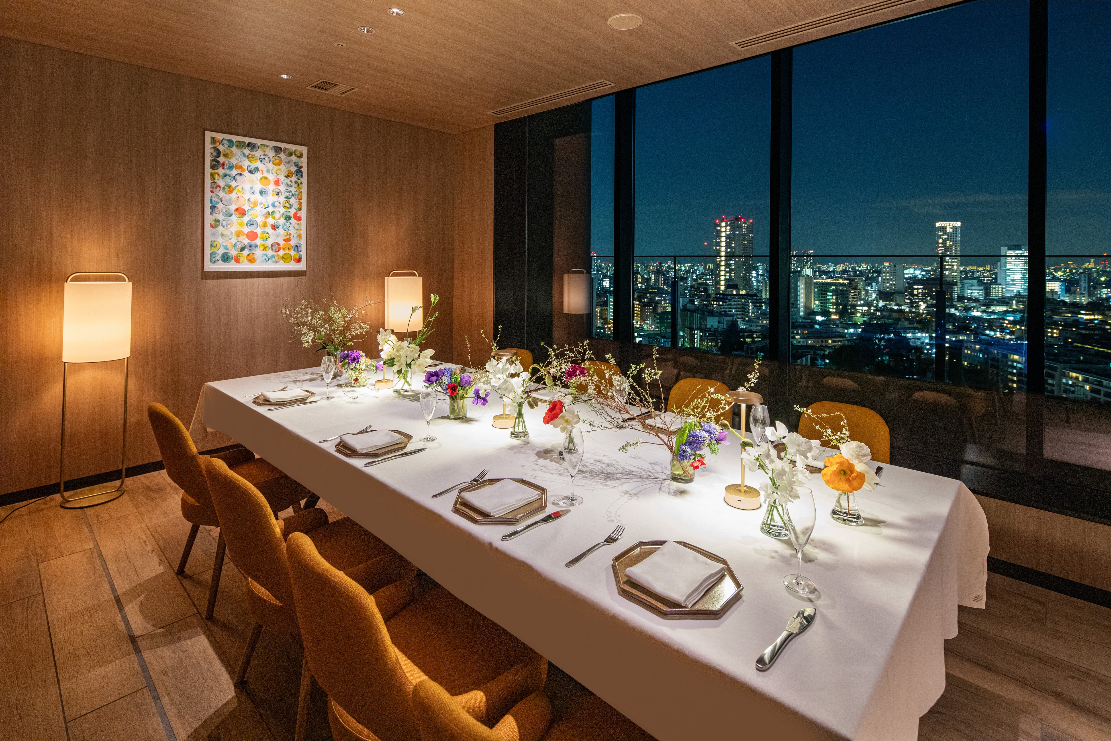 大きな窓から南西に広がる眺望が楽しめる開放感あふれるメインダイニングはテーブル間隔を広めに設けており、落ち着いてゆったりと食事を楽しめます。最大10名まで利用可能な個室も完備し、ビジネス会食や接待、お子様連れのママ同志のランチ会の利用に大変好評です。