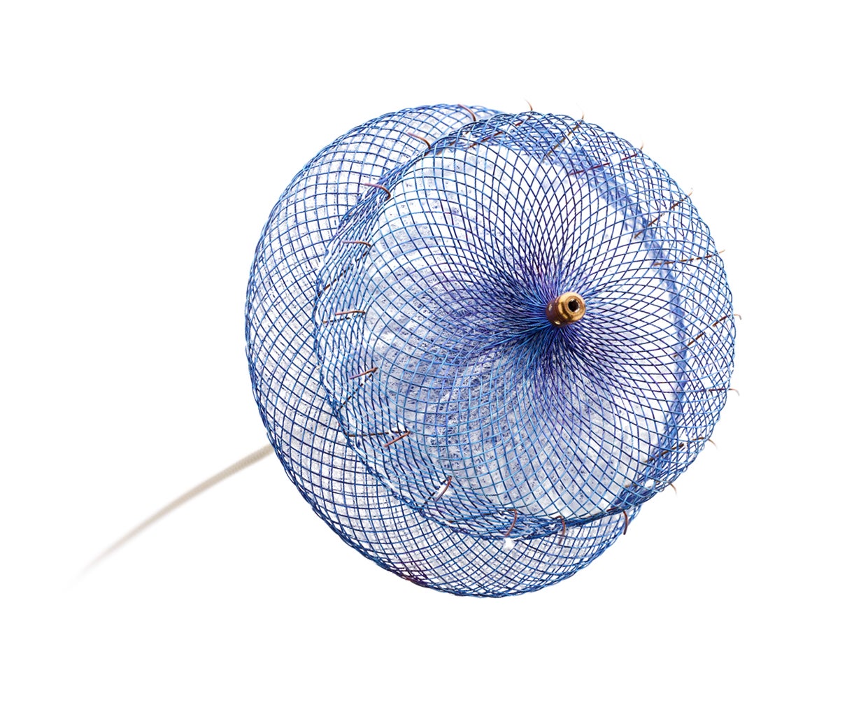 デバイスはニチノールワイヤーを編んで作られています。ニチノールは形状記憶の特性を持つ金属であり、デリバリー時にカテーテル内に収納されているデバイスが留置時には元の「記憶された」形状に戻ります。デバイスの形状は左心耳の開口部を閉鎖するように設計されています。サイズラインナップは幅広く、そのランディングゾーン(留置領域)は11~31mmをカバーしています。