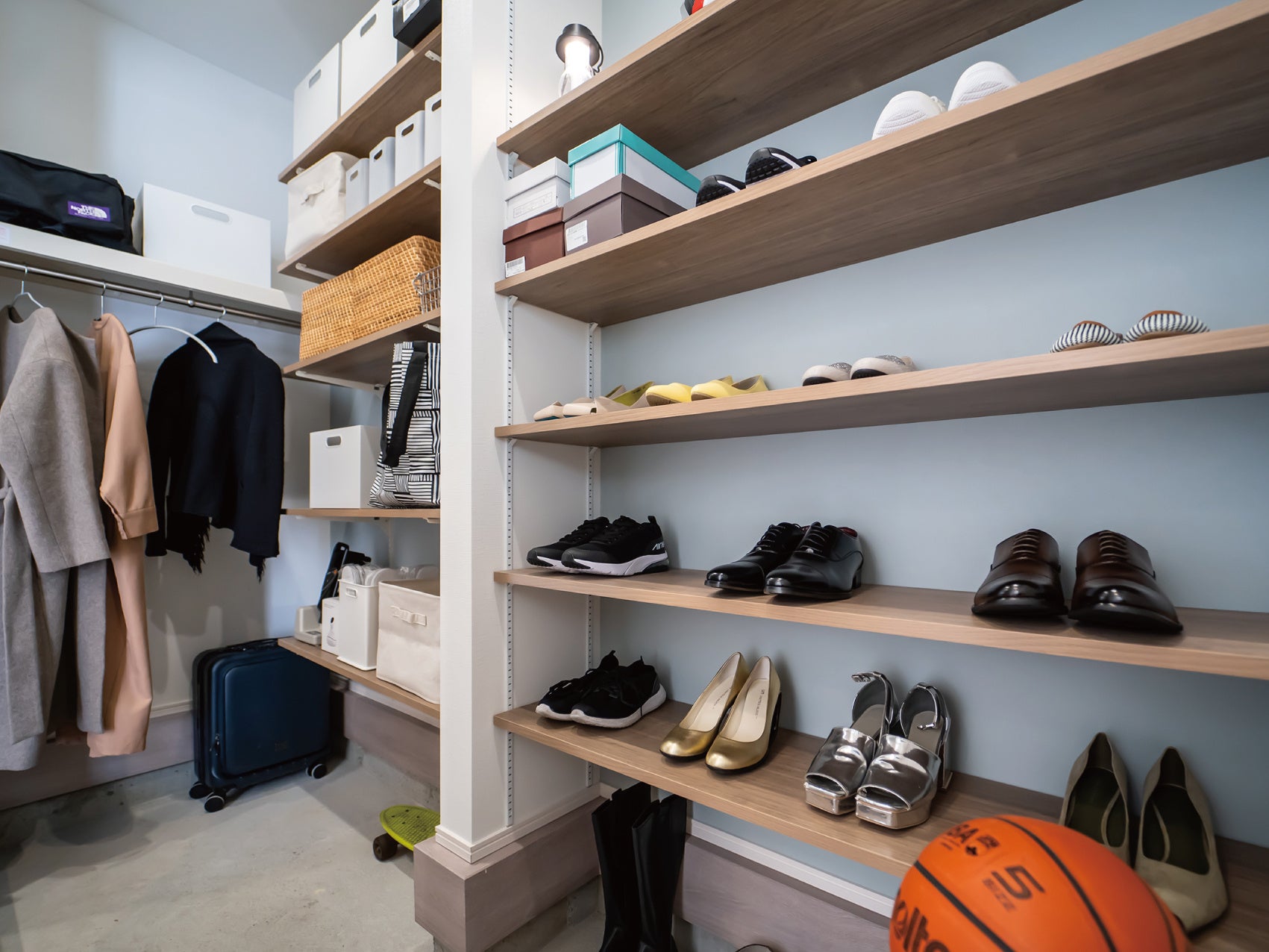 家族や趣味に応じた収納スペースを豊富に備え、スッキリとした空間を提供。シューズインクローゼットやファミリークローゼットなど、使い勝手にこだわった工夫が満載です。