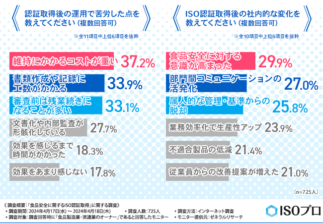ISO認証取得後の変化。負担は感じつつも、9割以上が期待した効果は実現できたと回答
