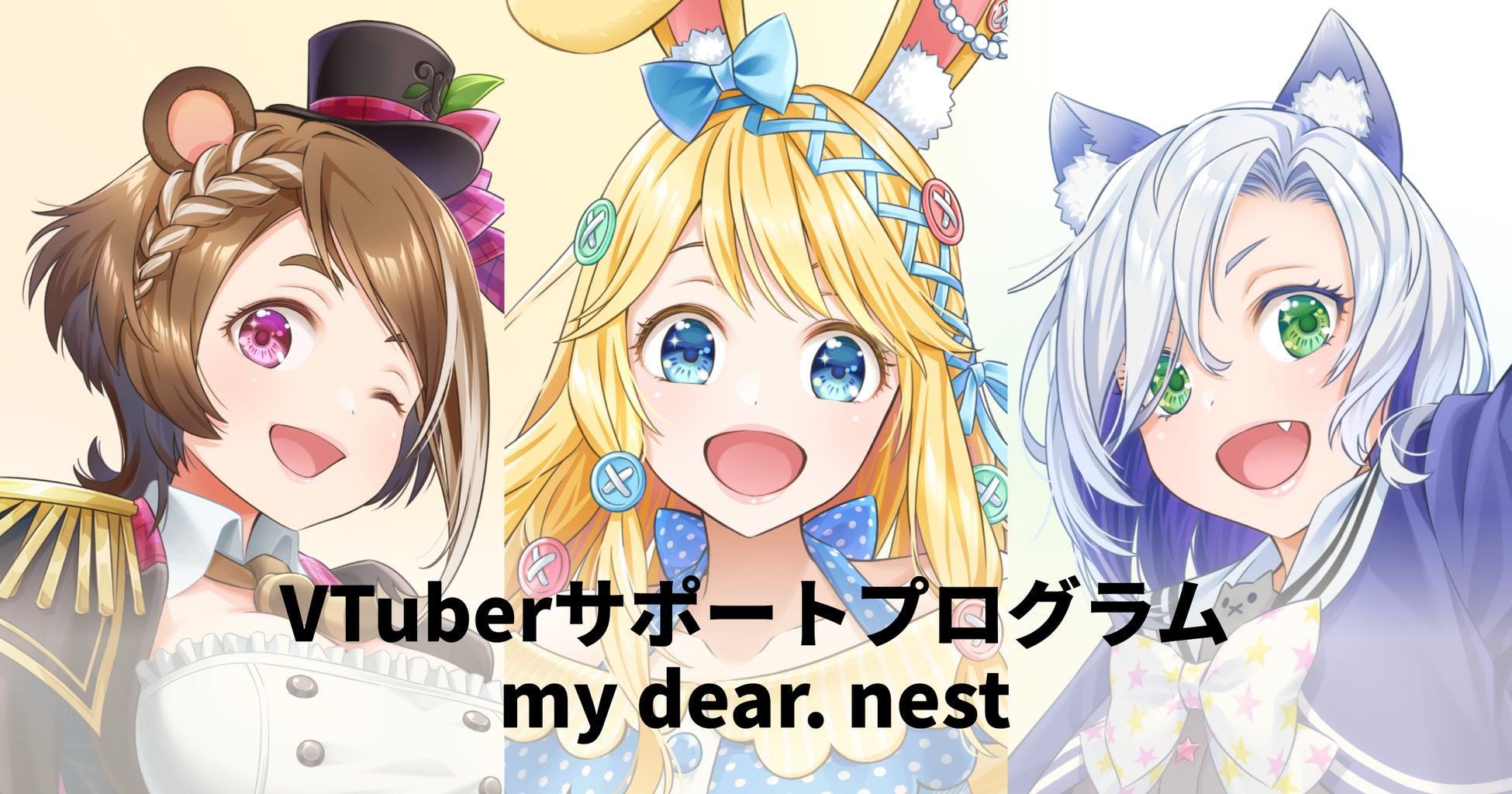 「my dear. nest」は企業案件やイベント参加のご提案、ファンサービスの体験価値向上のための自社開発推し活アプリ「my dear.」のご提供など、提携バーチャルタレントの方々の活動をサポートするプログラムです。