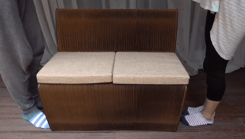 ペーパーソファは折り畳んで収納し、使いたい時に展開できる複数がけの便利なソファです。