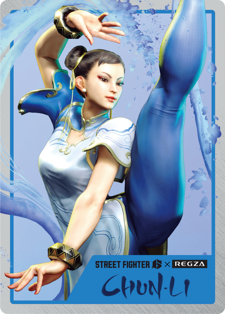 『ストリートファイター6』とのコラボレーションによるスペシャルトレーディングカードを制作・配布します。トレーディングカードは、人気キャラクター「キャミィ」に貴島明日香さんが扮した画カードに加え、「ルーク」「春麗」「リュウ」「ダルシム」の全5種類です。東京ゲームショウ2023の一般公開日に『ストリートファイター6』コーナーでの試遊1回につき1枚ランダムで配布するほか*3、下記の「東京ゲームショウ2023」ストリートファイター6×レグザ コラボ記念プレゼントキャンペーンなどで配布します。