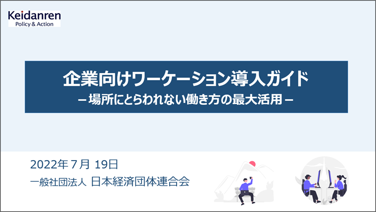 一般社団法人 日本経済団体連合会(東京都千代田区、会長 :十倉 雅和、以下経団連)は、企業におけるワーケーション制度の導入を支援する4つのツールを作成し、7月19日に公表しました。