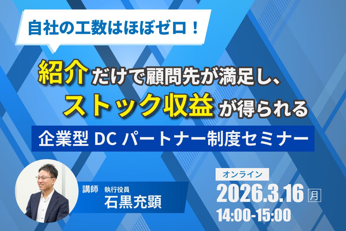 社会保険労務士法人とうかいのグループ企業である、株式会社日本企業型確定拠出年金センター(名古屋市)は、2026年3月16日(月)14時より、税理士・社労士・保険代理店の皆様を対象とした「企業型DCパートナー制度セミナー」をオンライン(Zoom)にて開催いたします。