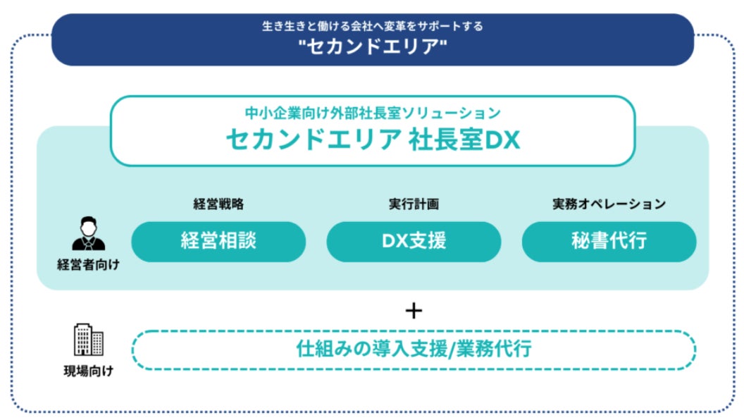 当社は、サービス第一弾として、経営者の「セカンドエリア」をサポートするソリューション「セカンドエリア 社長室DX」の提供を開始します。