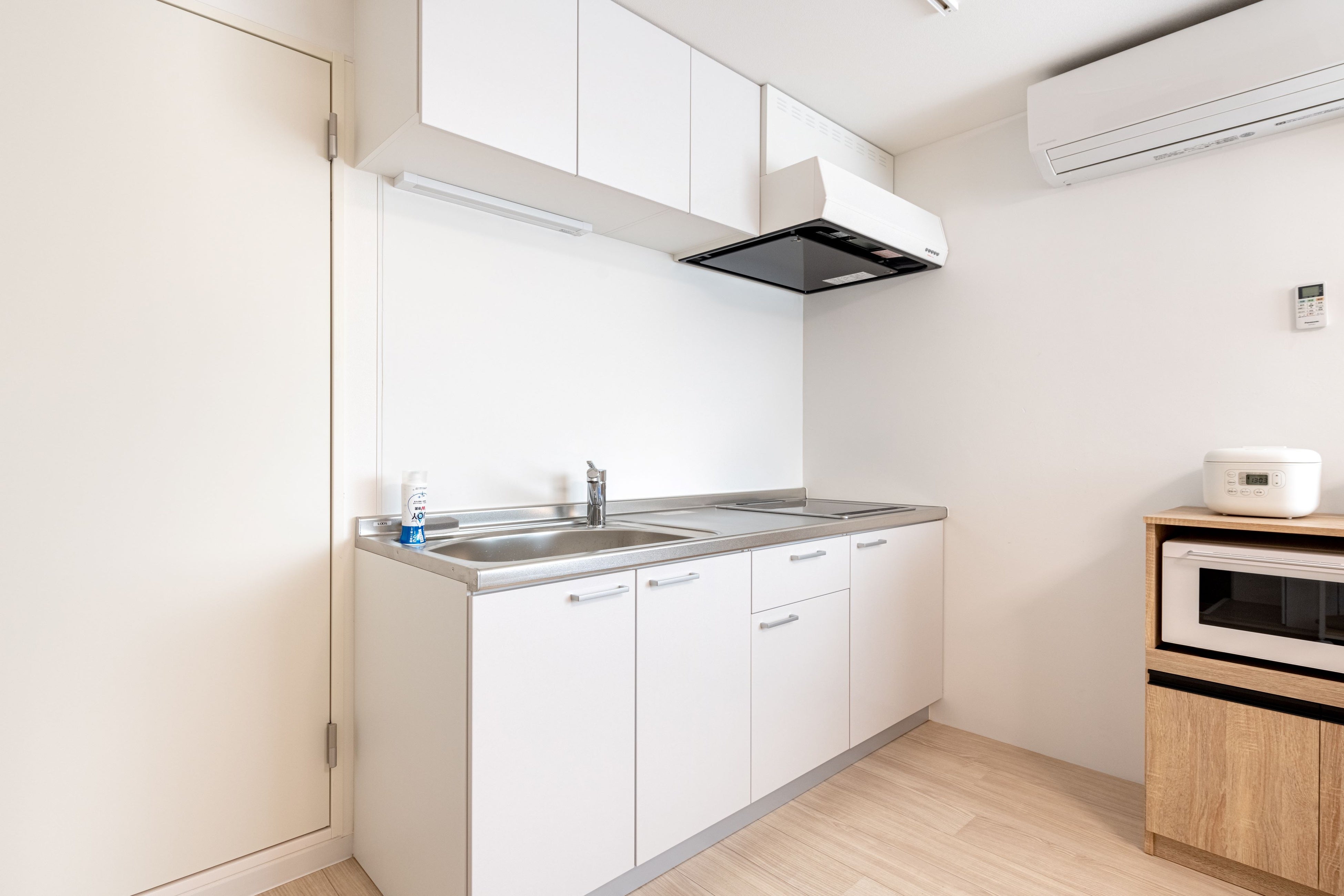 キッチンやシャワールームには長期滞在に適した設備をご用意しています。また完全無人運用のセルフチェックイン・アウトのため、完全プライベート空間をお楽しみいただけます。インバウンド対応をしているため、海外から訪日した方にも安心してご滞在いただけます。