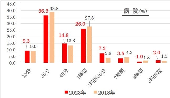 2018年の調査でも、“45分まで”は61.1%とほぼ同じ。近年は病院側も待ち時間対策に力を入れていますが、「45分以内」がひとつの目安のようです。