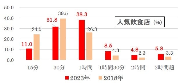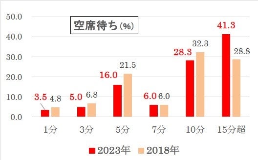 「15分超」は18年調査から約12ポイント増え(28.8%→41.3%)ており、空席待ちもやや気長になっているようです。