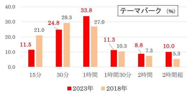 18年調査と比較すると、「15分」、「30分」が減った一方、「1時間」以上の各時間が増えており、少し気長になったようです。