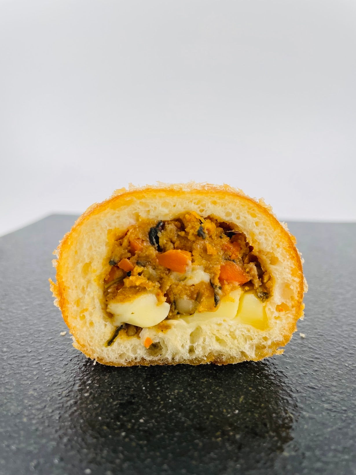 「卵」「にんじん」「トマト」を使った、山椒とチーズのトマトカレーパン