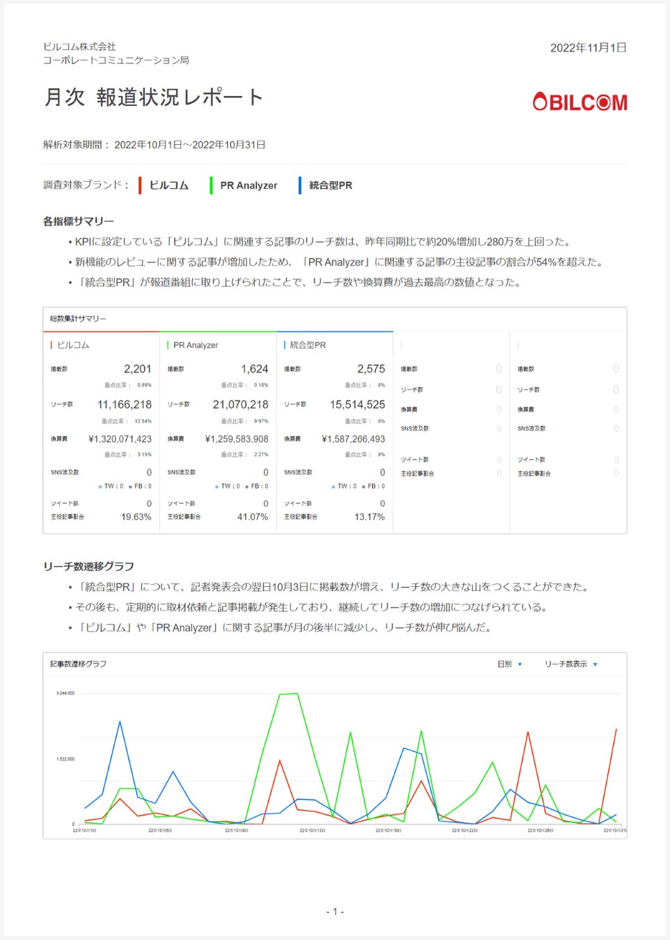 ビルコム株式会社(本社:東京都港区 代表取締役兼 CEO:太田滋、以下ビルコム)が開発、提供するクラウド型PR効果測定ツール「PR Analyzer」は、新たに報道レポート機能をリリースしました。