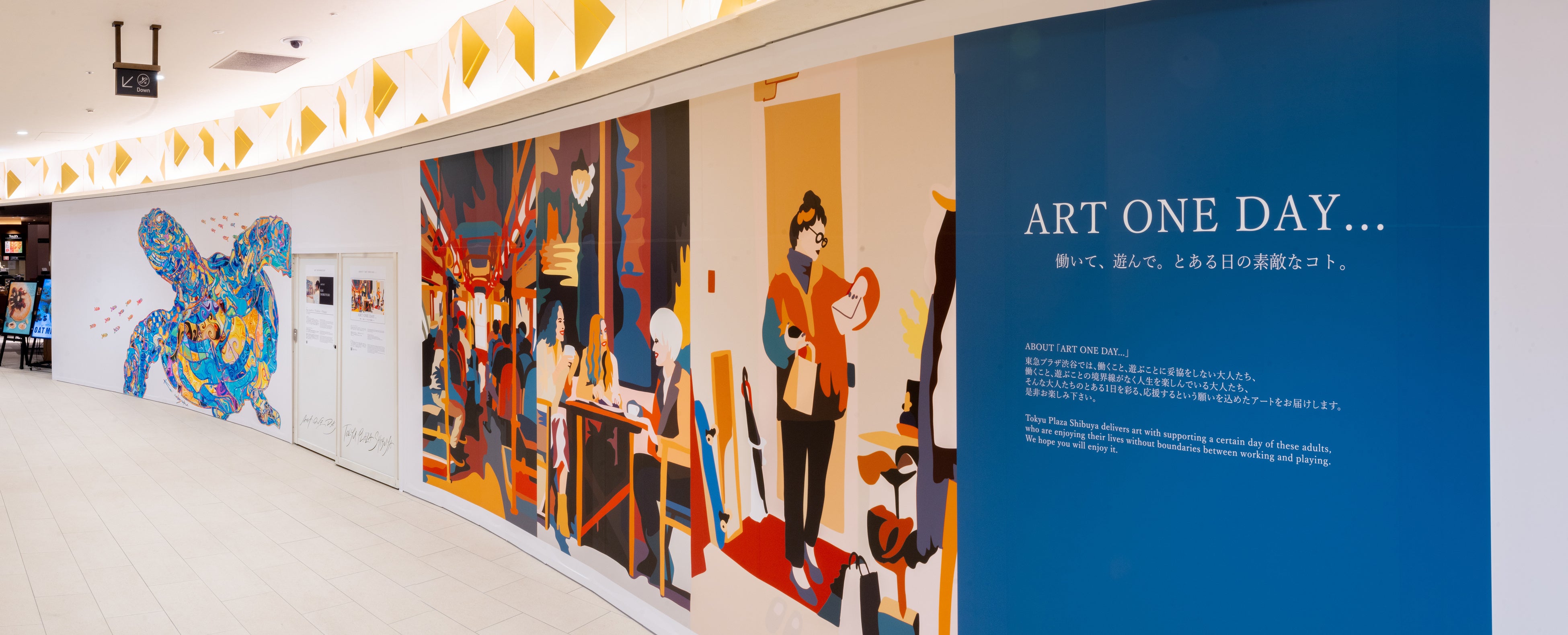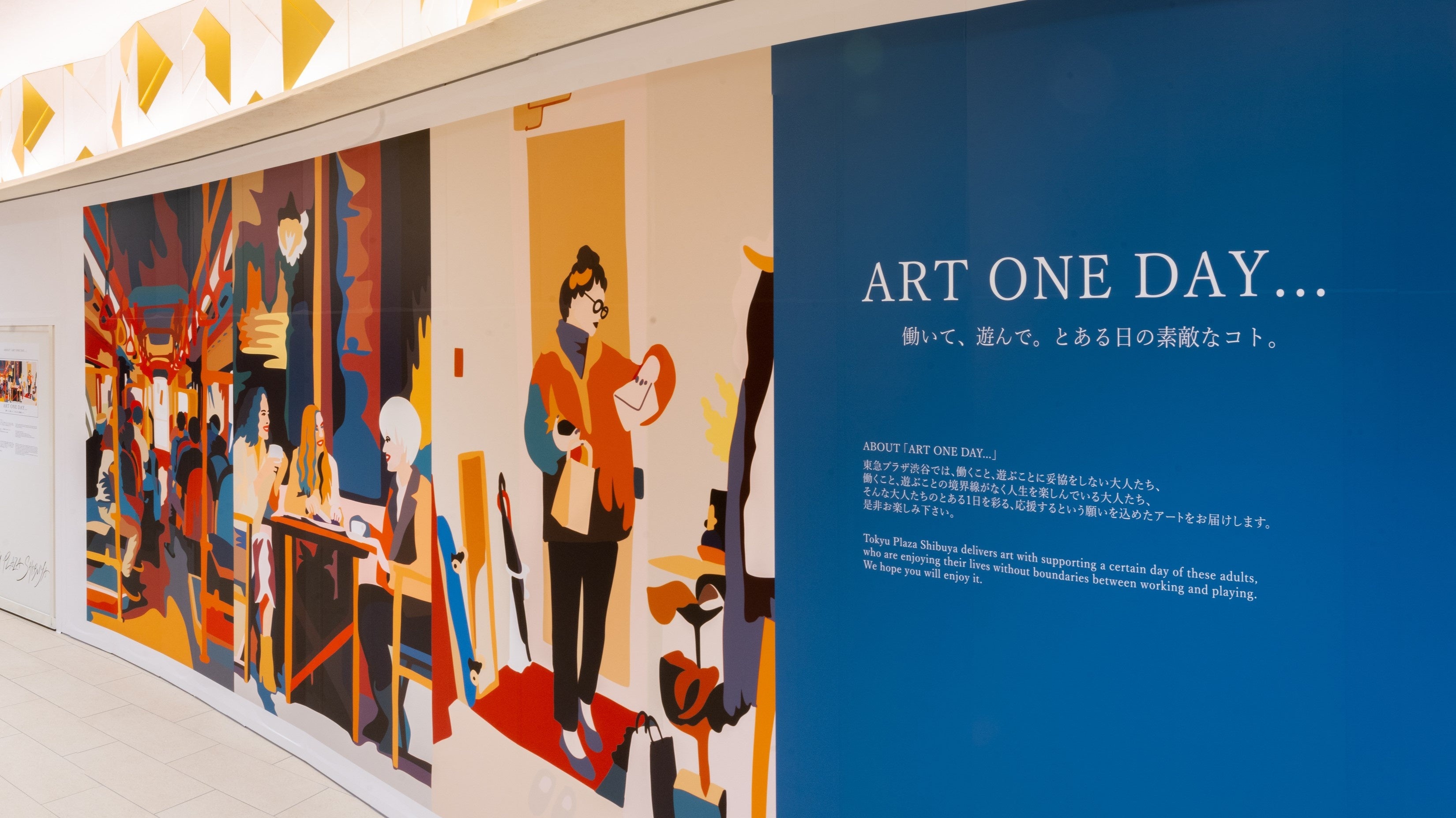 渋谷という街の持つイメージには、「遊ぶ場所・流行発信の場所」ということが最初に頭に思い浮かびますが、オフィスを構える企業も多く存在し、様々なショップが並び、そこで働く人々も多く存在します。そのため、「働く場所」だという側面も渋谷にはあります。東急プラザ渋谷に訪れるお客様は、しっかりと働いて、しっかり遊ぶというメリハリを知っている自立した大人のイメージでした。アート企画<ART ONE DAY...>では、働くこと、遊ぶことに妥協をしない大人たち、働くこと、遊ぶことの境界線がなく人生を楽しんでいる大人たち、そんな大人たちのとある1日を彩る、応援するという願いを込めたアートをお届けします。