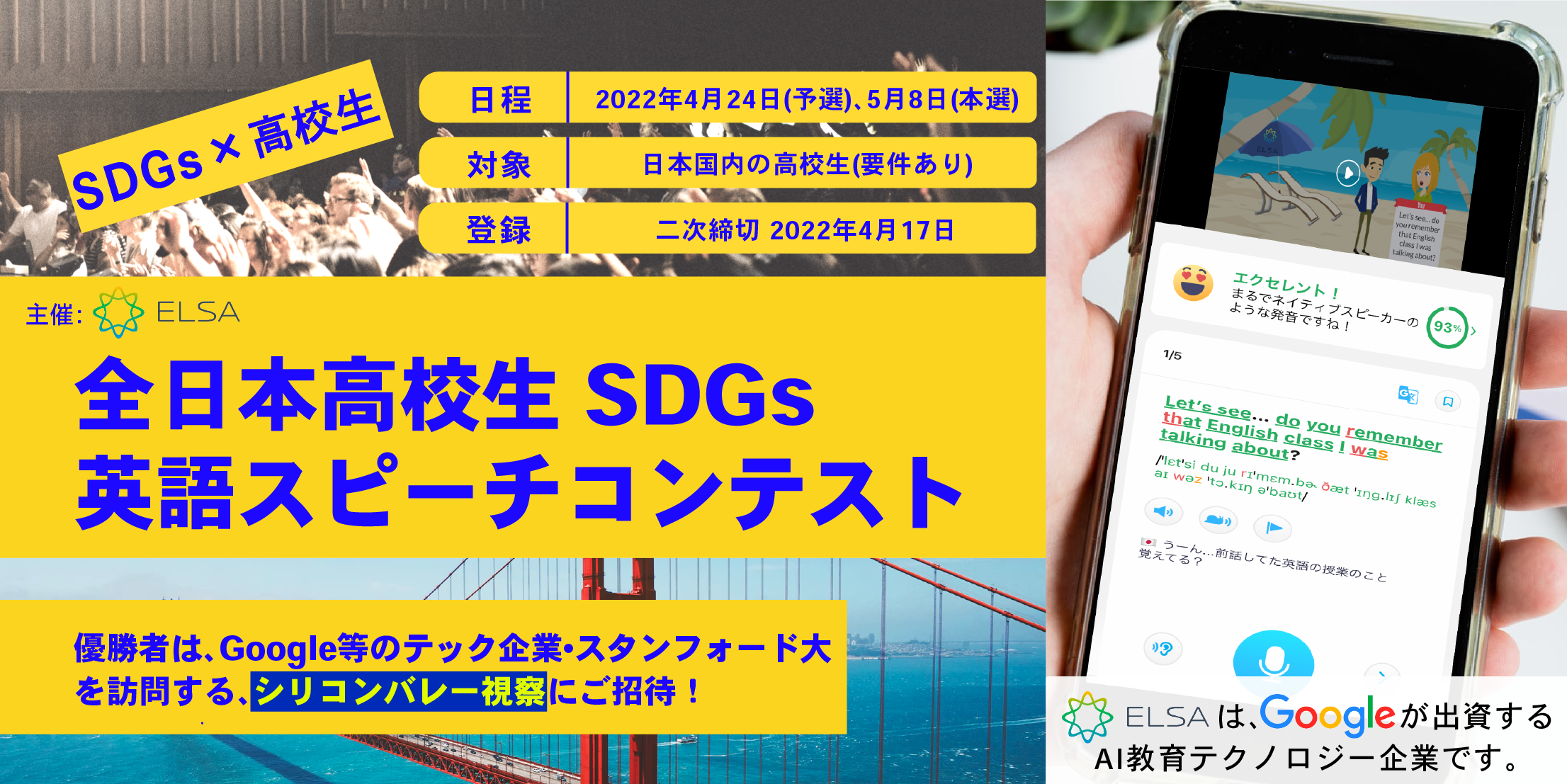 本コンテストにご参加頂いた高校生には、"ELSA Speak" の Pro アカウントを無料開放致します。