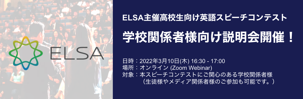 ELSAでは、日本にいる300万人の高校生を対象とし、SDGsのテーマに沿ったスピーチコンテスト「全日本高校生SDGs英語スピーチコンテスト」を2022年5月8日(日)に開催致します。SDGsをテーマとしたスピーチコンテストで、ELSA開発の AI 音声認識技術も審査に活用する世界初の試みです。