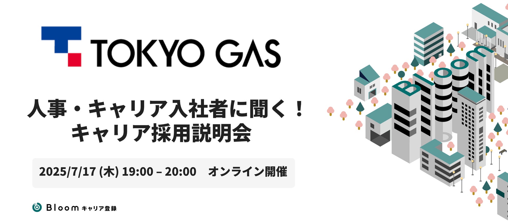 大手企業特化の転職・キャリア採用プロダクトを提供する株式会社Bloom(本社:東京都渋谷区、代表取締役社長:平原俊幸、以下「当社」)は、当社が提供する「Bloomキャリア登録」が、2025年7月より東京ガス株式会社(本社:東京都港区、取締役代表執行役社長:笹山 晋一、以下「東京ガス」)に導入されたことをお知らせします。