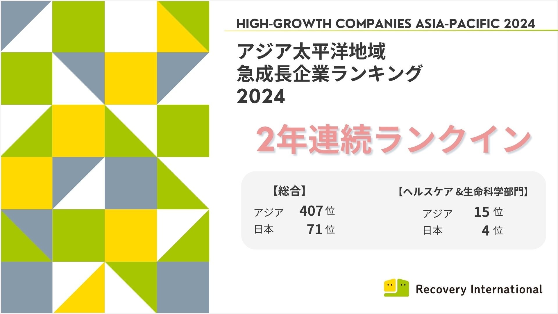 Recovery International株式会社が訪問看護サービス事業として唯一「アジア太平洋地域における急成長企業2024」で2年連続ランクイン!