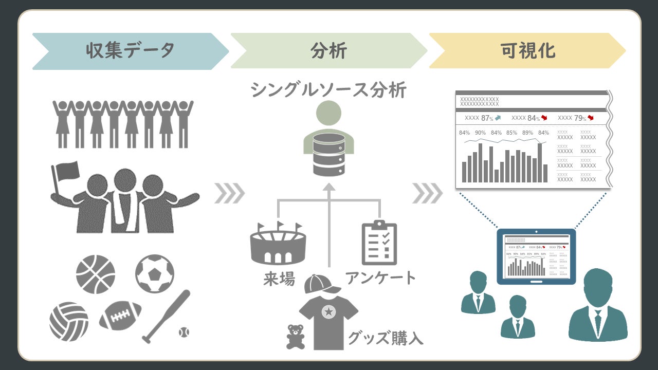 弊社のサポートサービスを導入後、散在していたデータを統合し、試合ごとの集客率や来場者の分析が可能になりました。また、試合実施後速やかにデータ連携をし、ダッシュボードに反映する環境を構築いたしました。