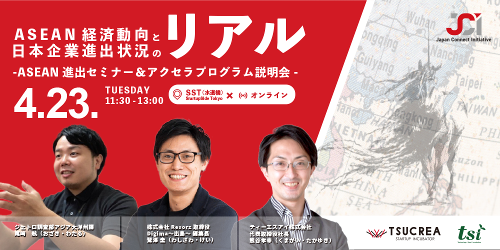【4月23日(火)開催】ASEAN経済動向と日本企業進出状況のリアル ~ASEAN進出セミナー&アクセラプログラム説明会~