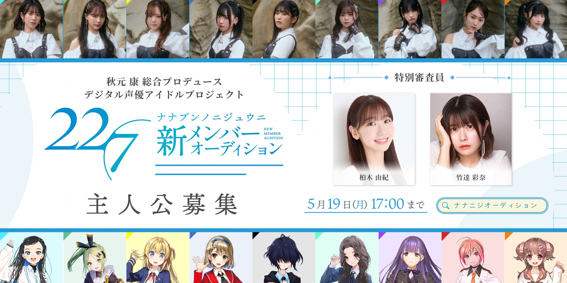今回のオーディションでは、22/7の“声優アイドル”という特性を活かし、「アイドル選考」と「声優選考」の2コース制を導入。それぞれの分野で豊富な経験と実績を持つ特別審査員を迎え、公平かつ質の高い選考を行います。