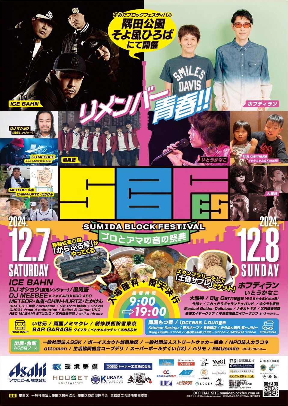 またSUMIDA BLOCK FESTIVALは全ステージ入場無料としている為、運営する財源はスポンサーフィー、開催当日の飲食・物品販売の売上にて賄われています。