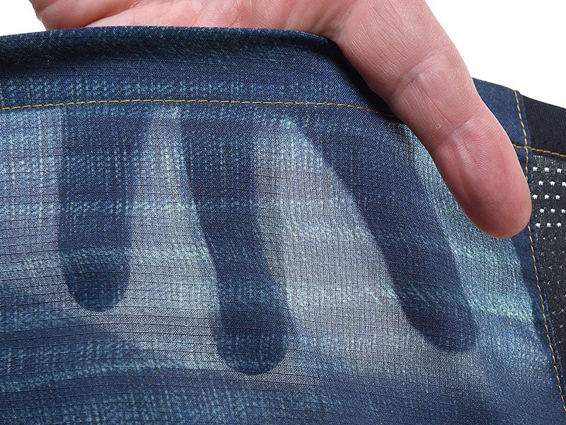 特殊昇華プリントにより、ダメージやステッチ、ヒゲまで忠実に再現したリアルなデニム柄。素材は超軽量・吸水速乾の「WILD DRY」で、ドライな肌触りと高通気を実現。履き心地にもこだわりました。