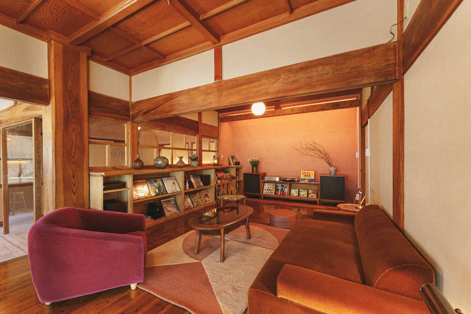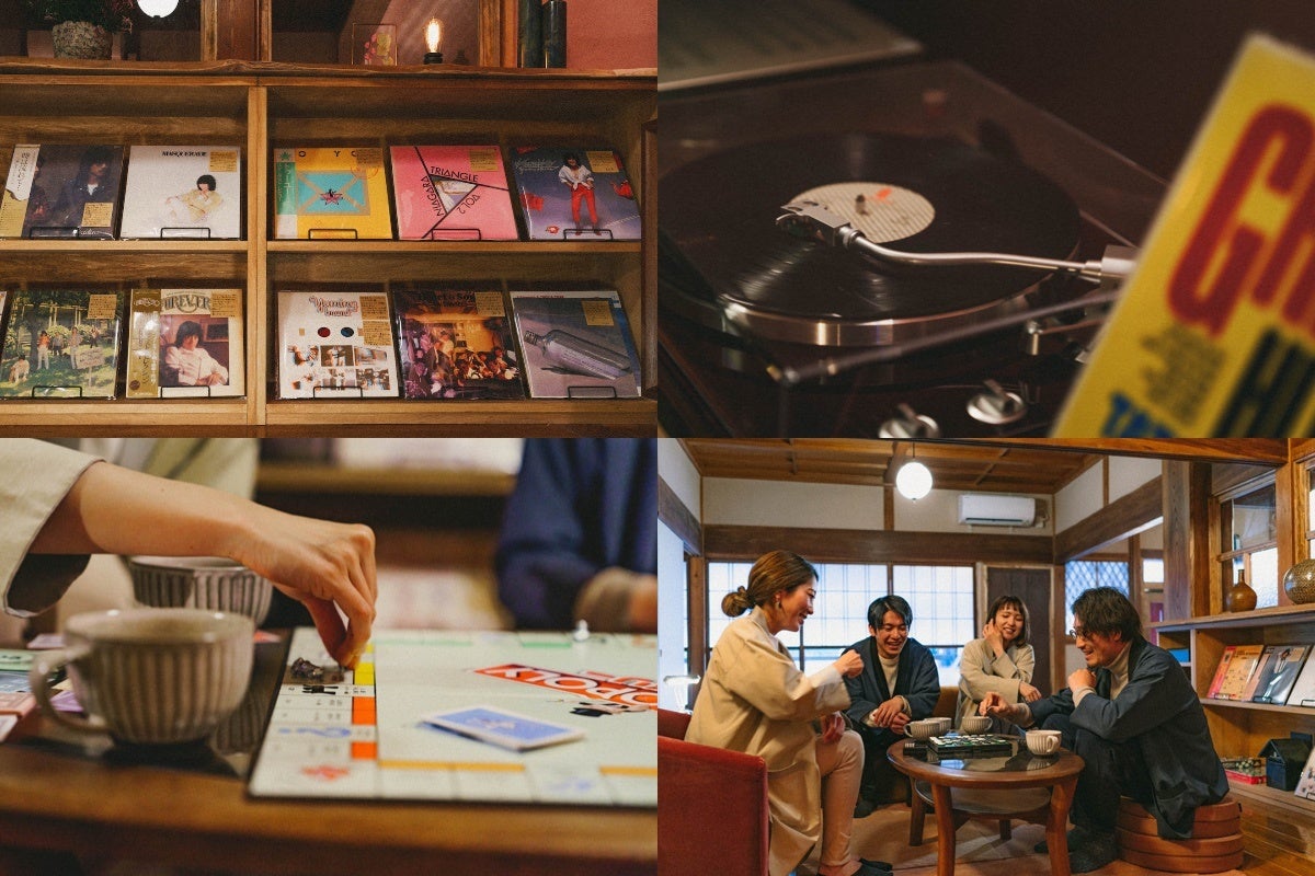 宿に着いてほっとひと息。レコードに針をそっと落とせば、時代を超えてなお洒落ている昭和ノスタルジーなメロディーが。ゆるく自由な時間のはじまりです。