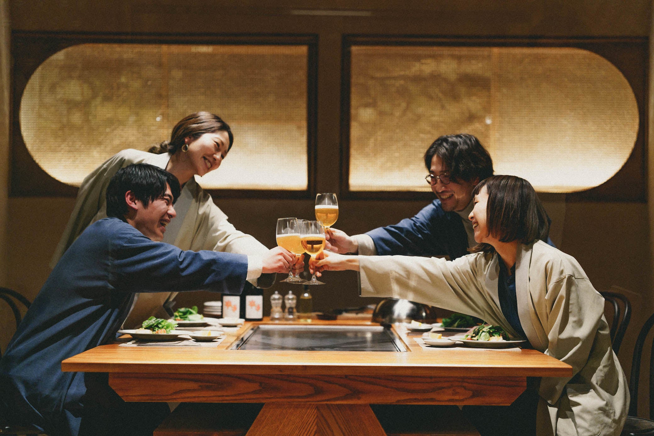 お食事は鉄板を囲んで創作コースを