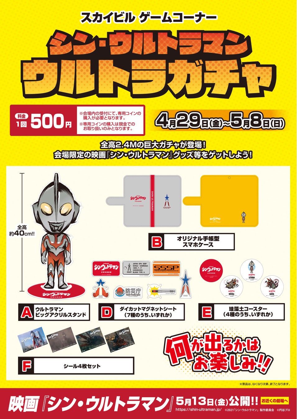 映画『シン・ウルトラマン』の公開を記念して、みなとみらいエリアでコラボレーション企画を開催。その一環として、2.4mの巨大ガチャが登場!スカイビル限定の映画『シン・ウルトラマン』グッズ等をゲットしよう