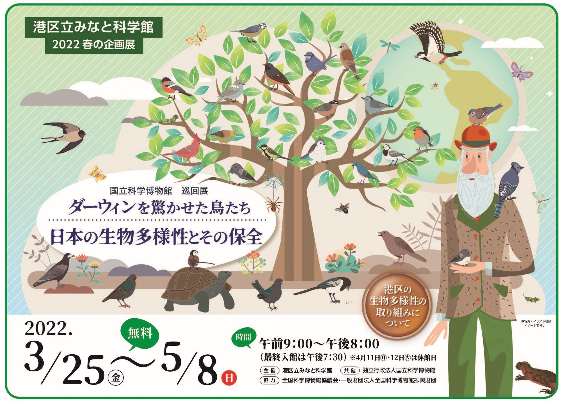港区立みなと科学館(東京都港区虎ノ門)は、2022年3月25日(金)から2022年5月8日(日)まで、2022春の企画展「国立科学博物館 巡回展 ダーウィンを驚かせた鳥たち 日本の生物多様性とその保全」を開催いたします。