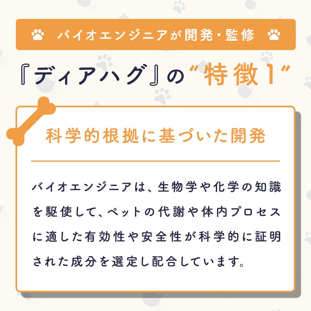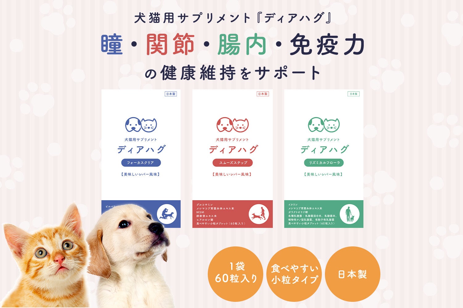 【体調を崩しやすい季節の変わり目に】愛犬・愛猫の健康維持をサポートする獣医師監修サプリメント『ディアハグ』新発売!美味しいレバー風味で、毎日のライフスタイルに笑顔をプラス!
