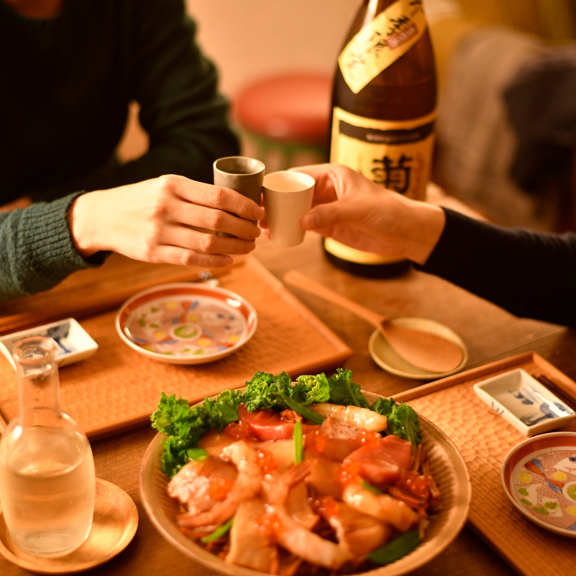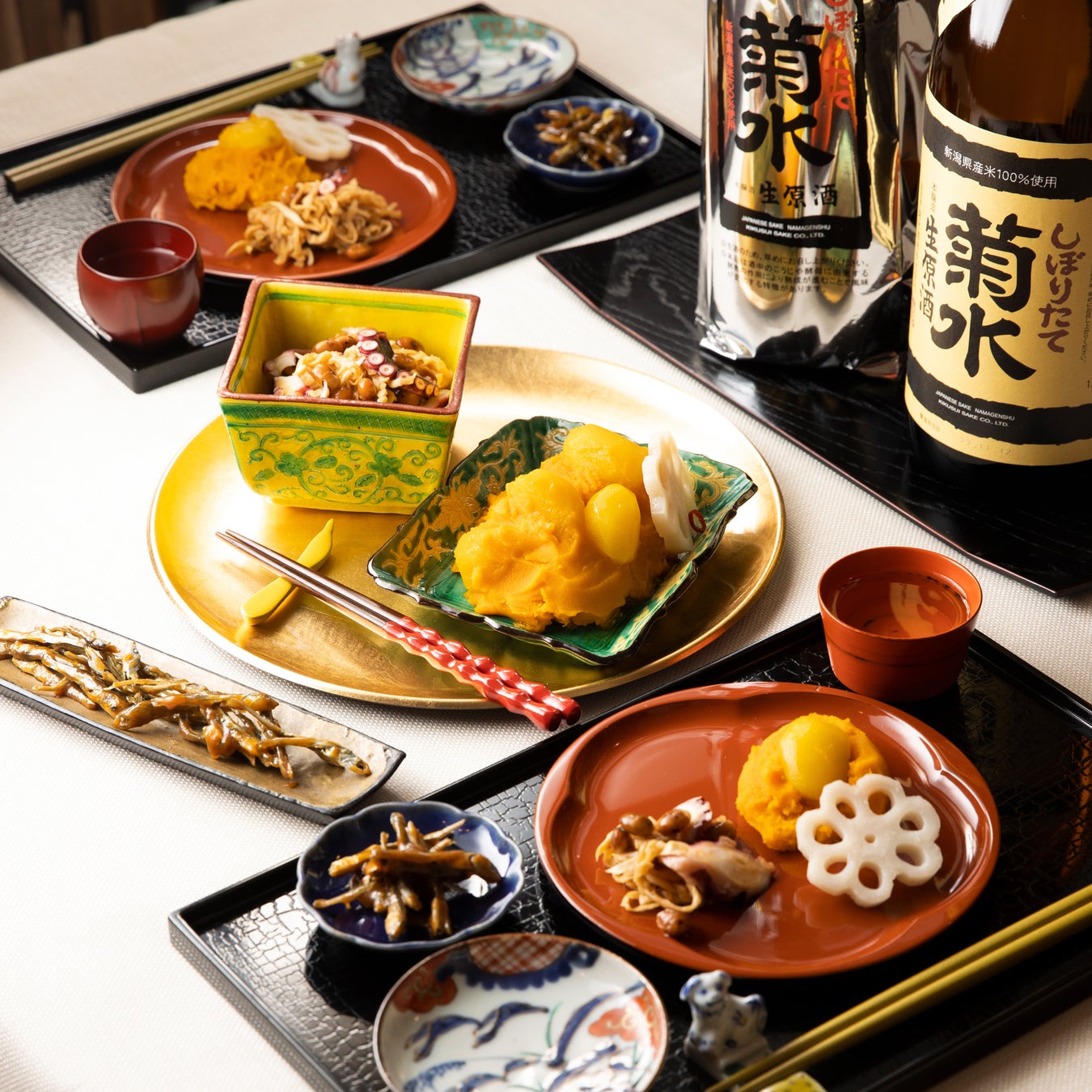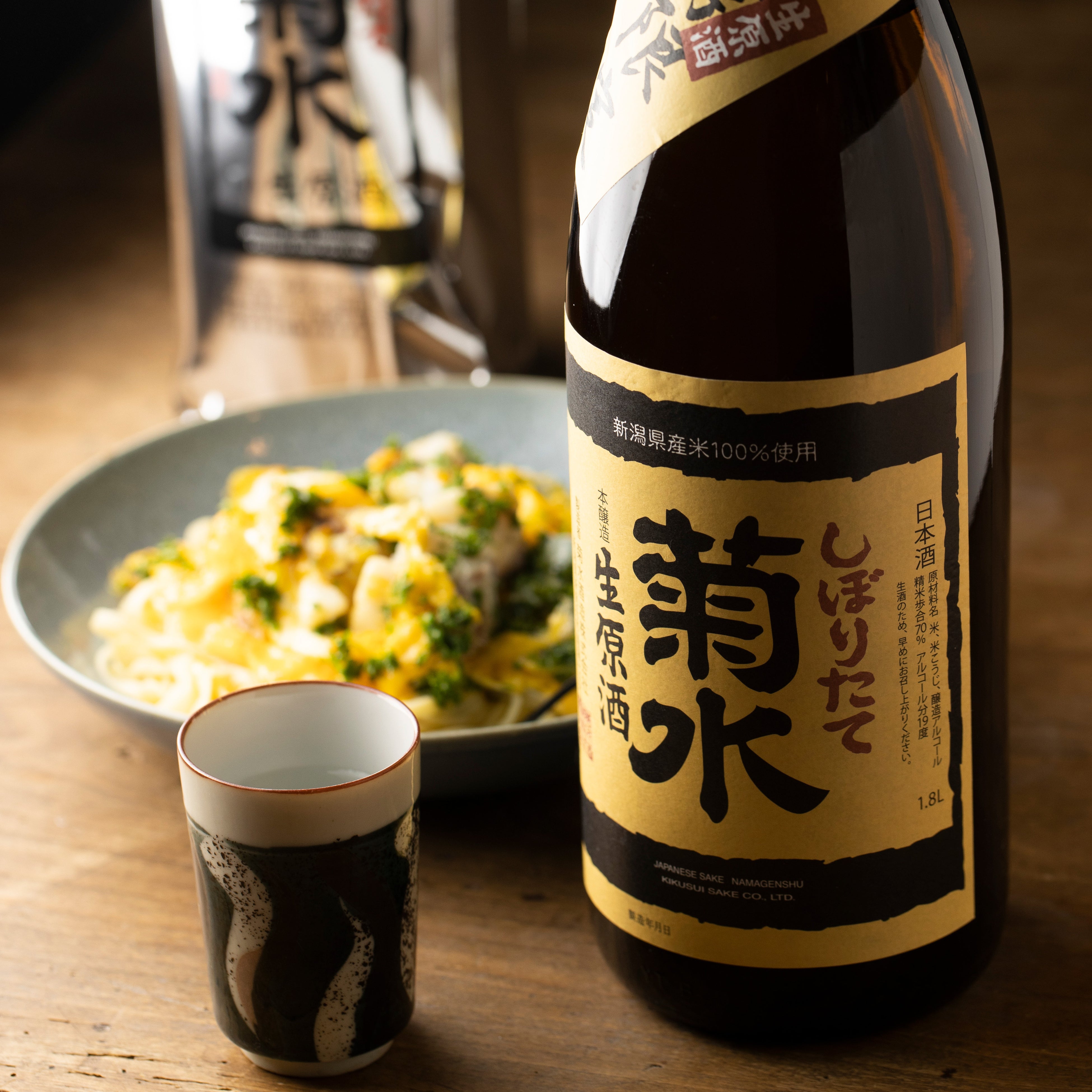 今しか味わえない「冬季限定 菊⽔しぼりたて⽣原酒」。⽇本酒がおいしく感じられるこの季節、旬の味覚と一緒に、たっぷりとお愉しみください。