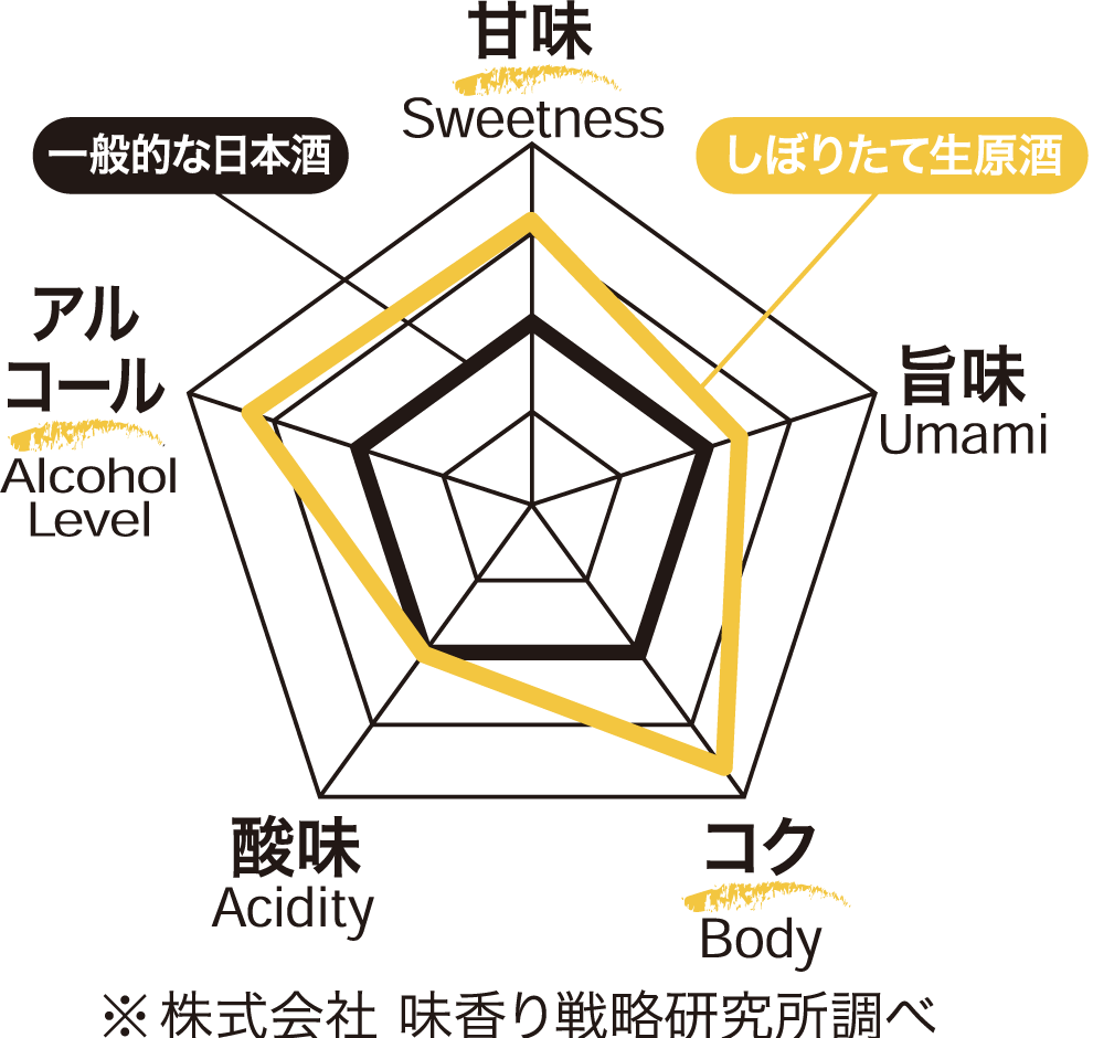 一般的に酒造りの工程では、もろみを搾った後、調整のための加水や酵素を失活させるための加熱殺菌をし、充填時にも加熱殺菌が行われますが、「生原酒」は加水と加熱殺菌を一切行わずにつくられます。この製法により、しぼりたてのフレッシュさと濃厚でコクのある味わいをご堪能いただけます。