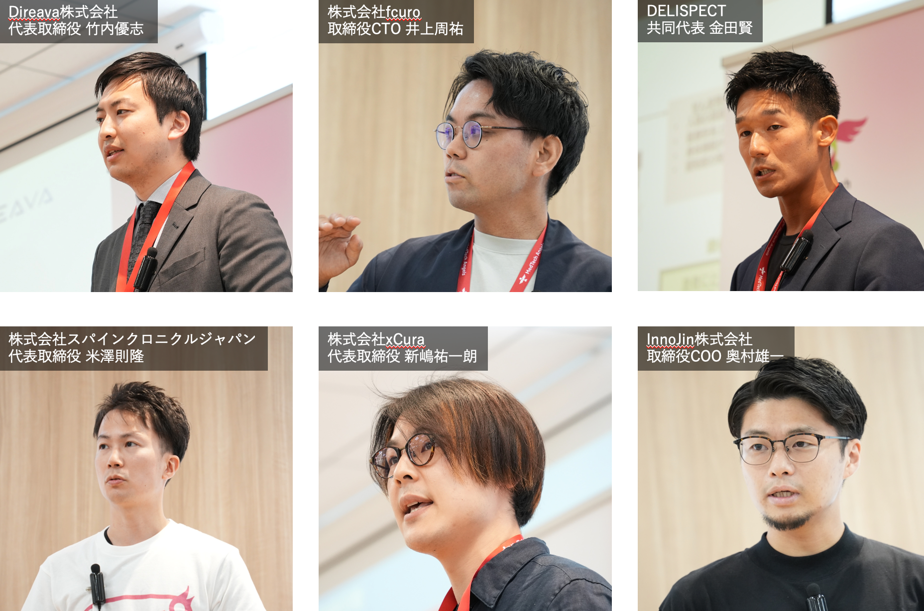 最優秀賞は、株式会社fcuro(大阪市、CEO岡田直己)の「救急診療における見逃しと時間の問題を解決する全身検索型画像診断AIシステム」が受賞した。今回のデモンストレーションで発表した井上周祐CTOは「救急医療で緊急性の高い外傷の診療で、救命医が多くの時間を割いて重症度の評価をしていますが、本AIシステムではより精度の高い診断結果を可能にしています。また今後は、すべての治療の糸口となるものと確信しています」と語った。本年度は予選を勝ち抜いた計6社がピッチで発表し、それぞれの事業戦略やビジョンについて熱く語った。
