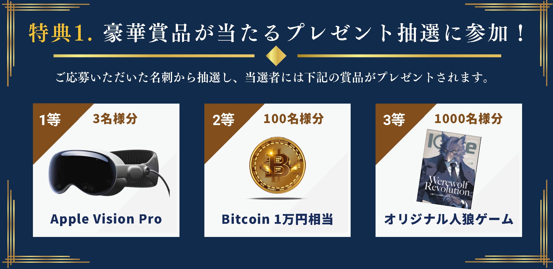 ・抽選でApple Vision Pro を3名、ビットコイン1万円分を100名、Ioliteコラボ限定「人狼ゲーム」を1,000名にプレゼント