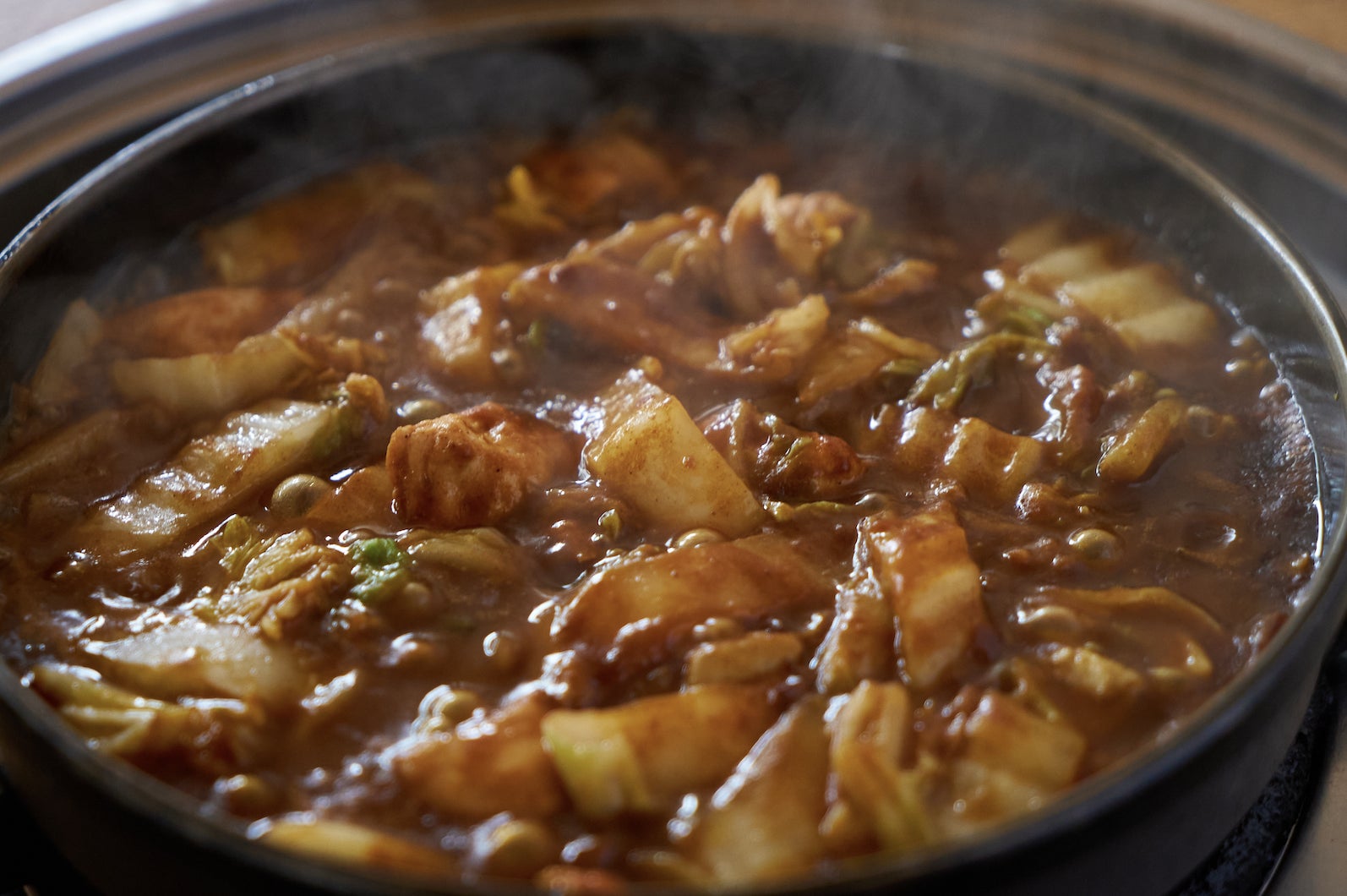 〆にはアルバカレーを。ごはんか、うどんか、ラーメンか!出汁の出た鍋とカレーの相性が意外にもGoodです!
