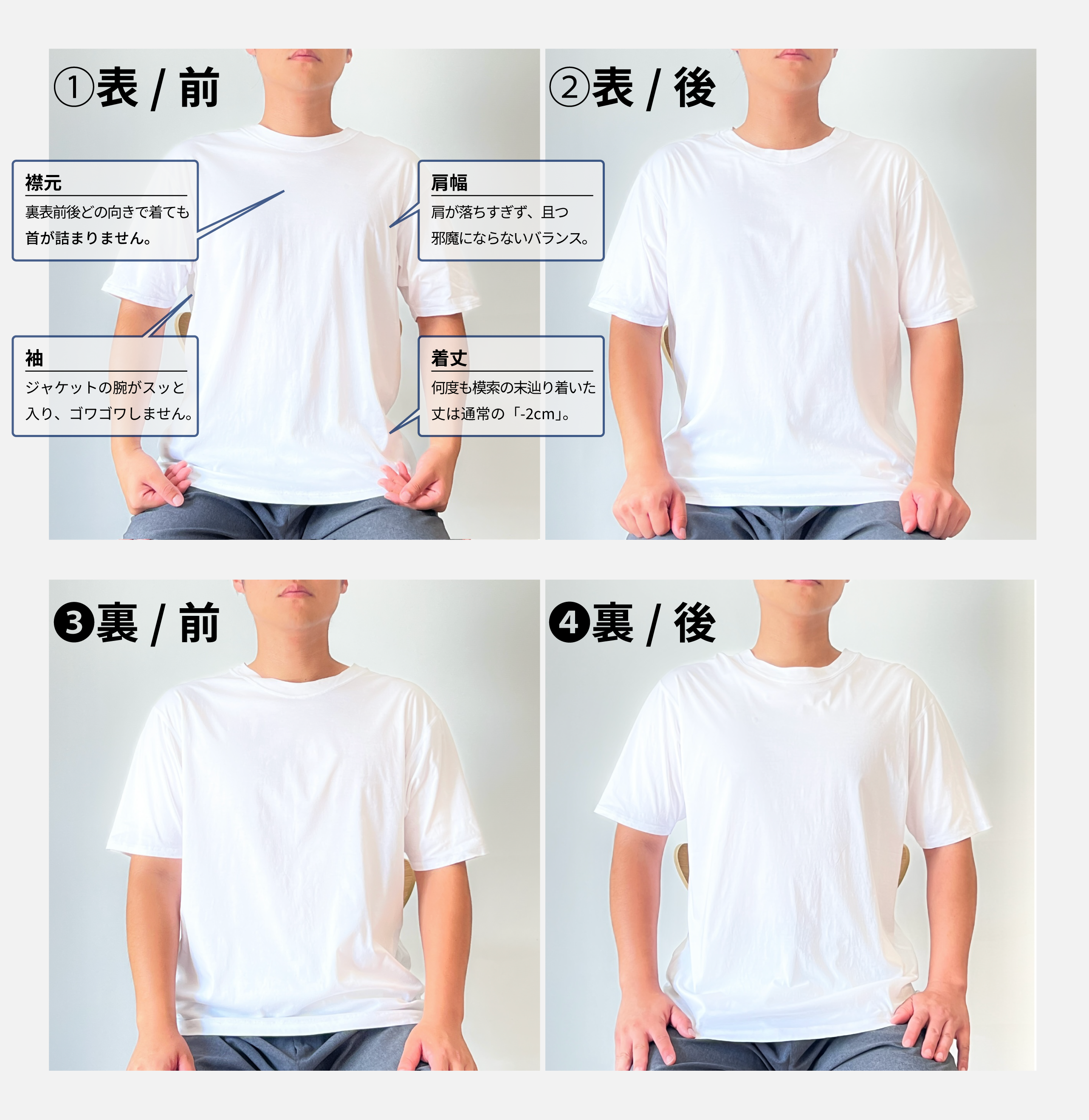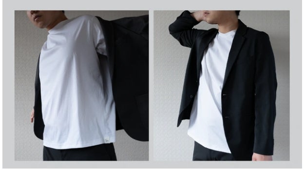 そのままの着心地はもちろんの事、ジャケットを上に着た際の着心地、見た目への配慮をとことん追求して開発しました。