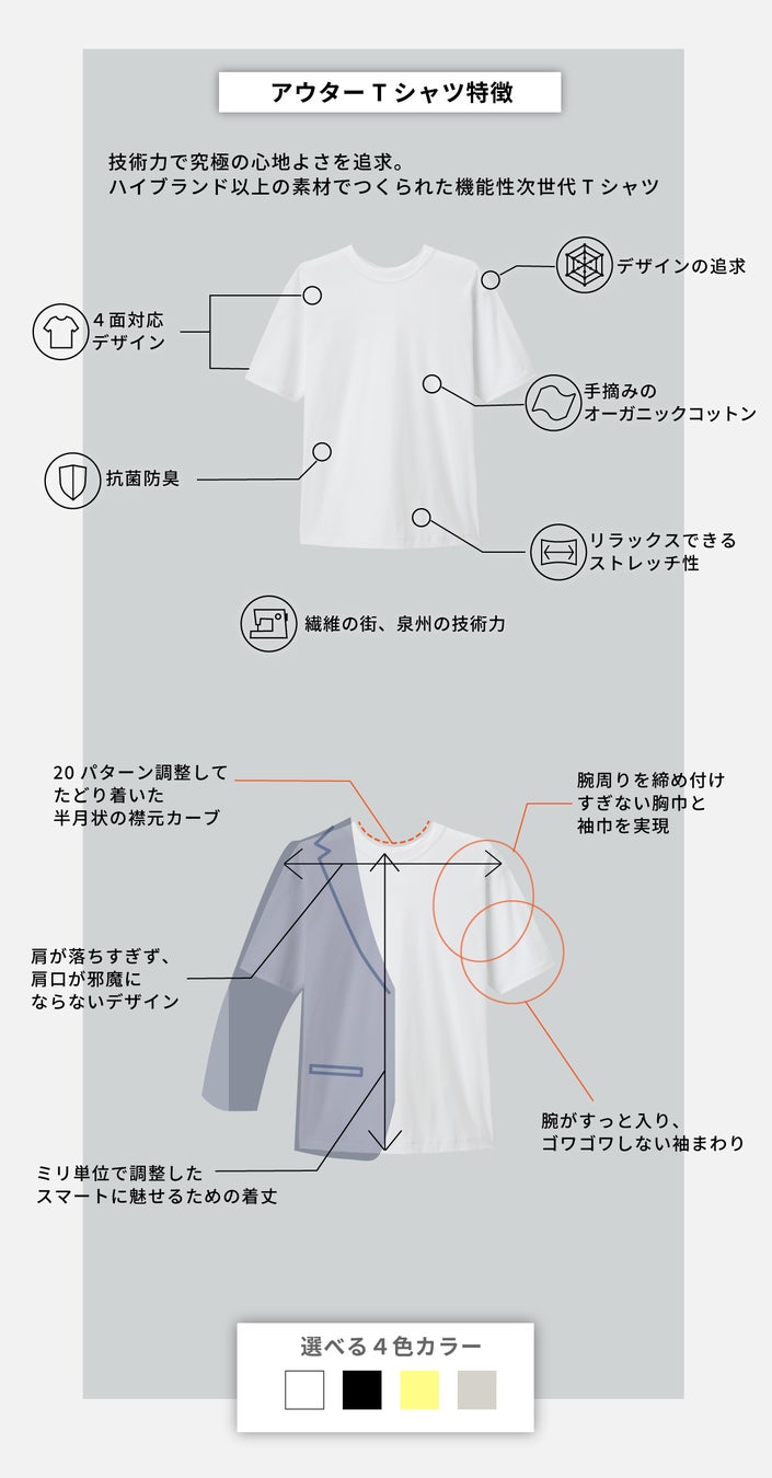 ●究極の着心地。ラグジュアリーブランド品質のアウターTシャツの特徴