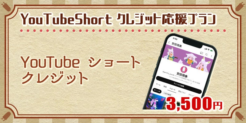 →クレジット応援プラン安田現象YouTubeチャンネルにて投稿されるYouTubeショート動画にお名前をクレジット。