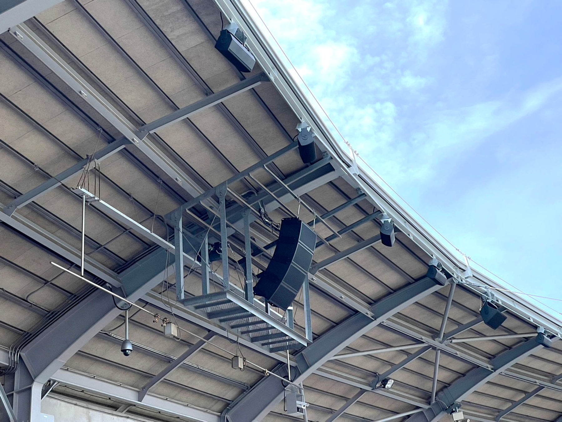 広島市民球場の大屋根下ならびに客席スタンドポール部に、IP55に準拠した全天候仕様のスピーカーを設置しました。