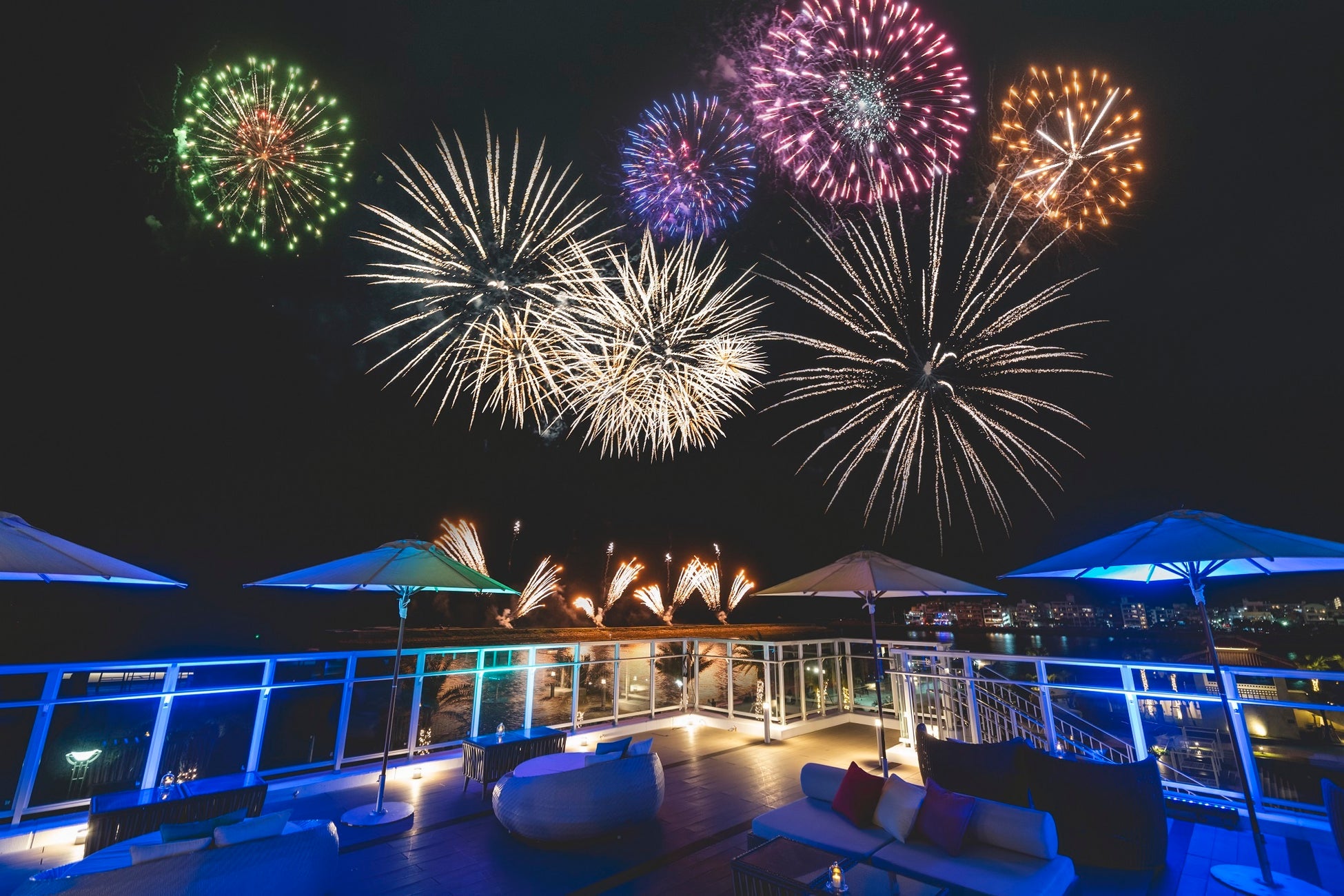 ホテル目の前に打ち上がる、迫力満点の花火を心行くまでお楽しみください。
