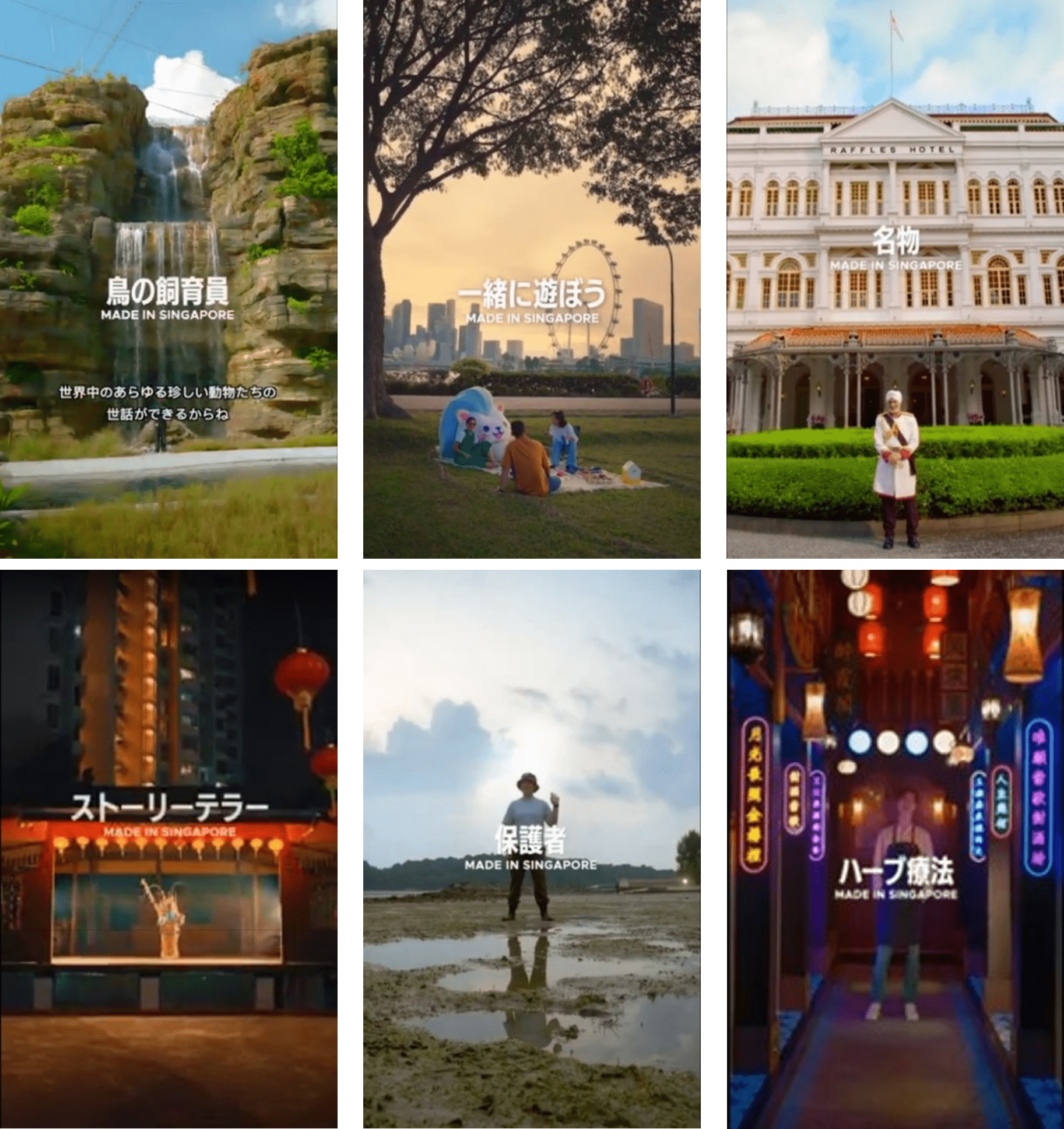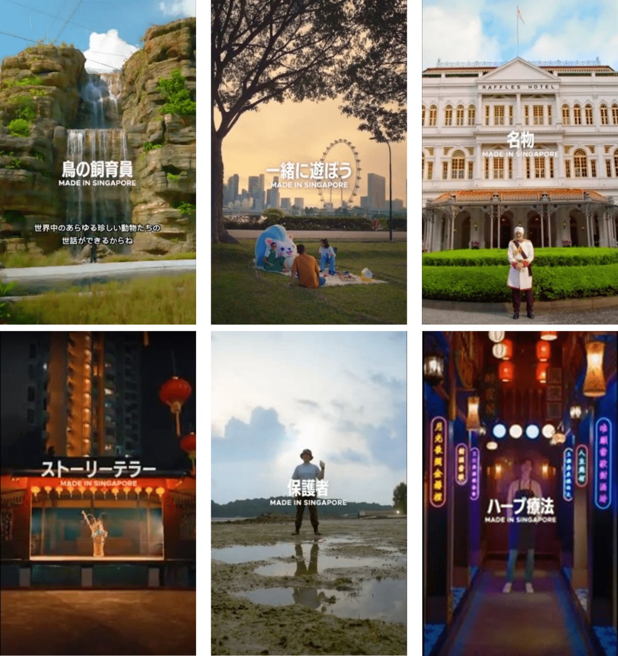 「Made in Singapore」は、シンガポールへの旅を刺激することを目的とした、STBの最新のブランドキャンペーンです。「Passion Made Possible」のブランドにふさわしく、本キャンペーンでは、日常の瞬間を非日常の体験にする、シンガポールでしか味わえない、ユニークで、思いがけない、多様な体験を提案していきます。「Made in Singapore」は単体では使用せず、必ずその前に紹介する体験に対して、ひねりを加えた言葉を加えます。また、日本語のタグラインは「予想外の体験。シンガポール」です。