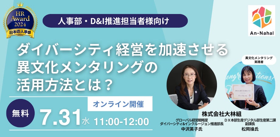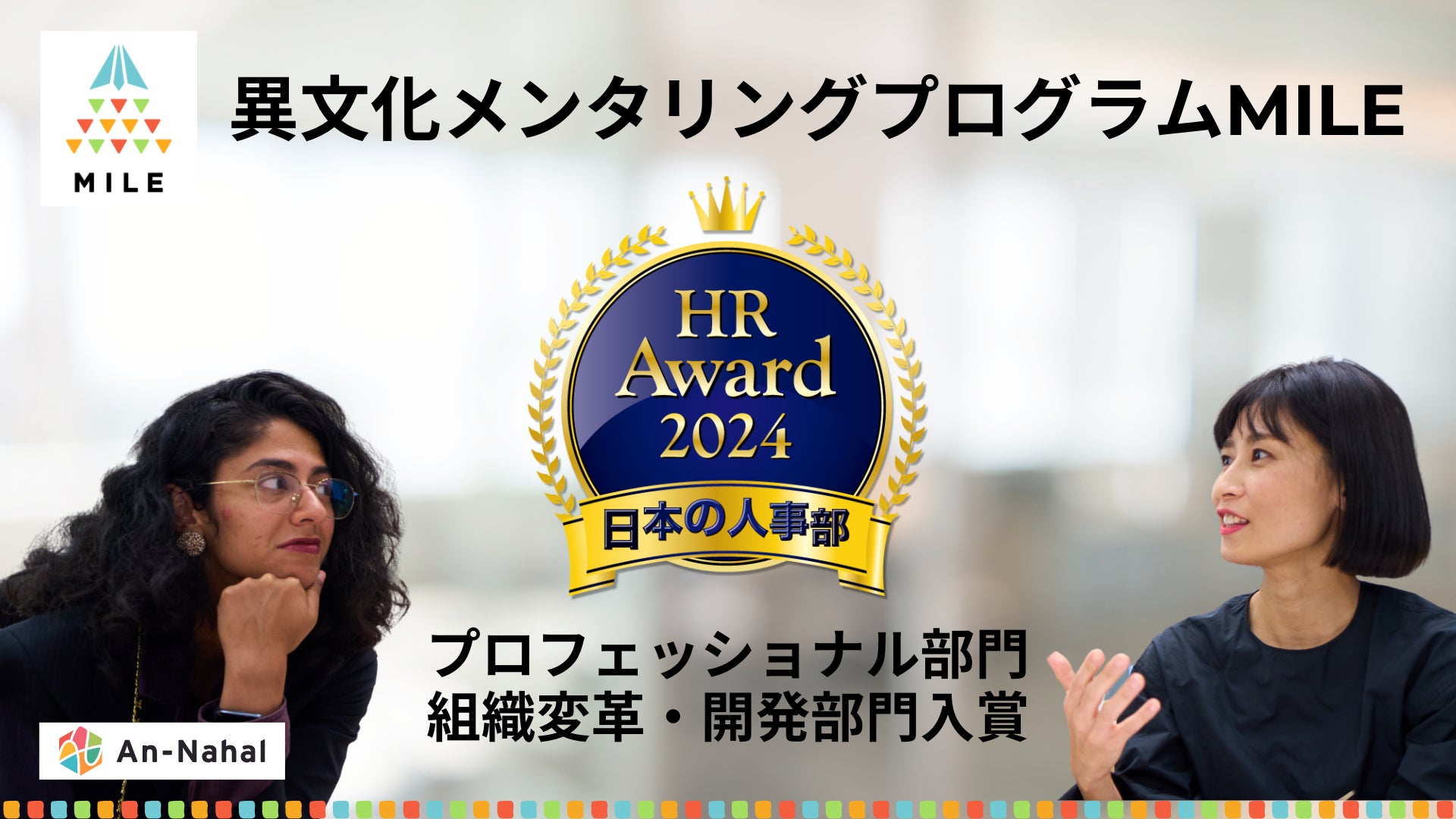 株式会社An-Nahal(所在地:神奈川県横浜市、代表取締役:品川優、以下An-Nahal)が2021年から開始した、ダイバーシティ経営を加速する外国人留学生と日本人ビジネスパーソンの異文化メンタリングMILEが、日本の人事部「HRアワード2024」(主催:「HRアワード」運営委員会、後援:厚生労働省)のプロフェッショナル部門組織変革・開発部門に入賞しました。