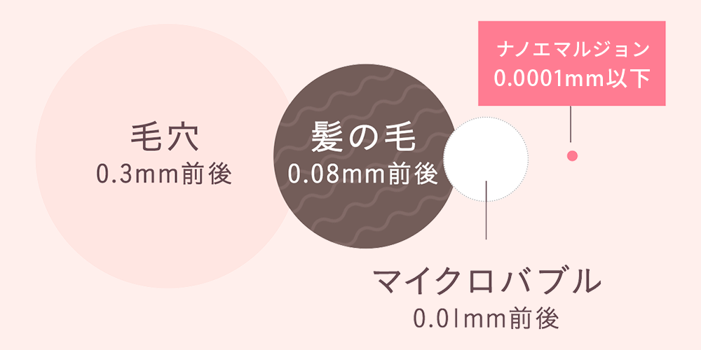 毛穴の約1/3000サイズのナノエマルジョン化した粒子が角質層の隅々まで瞬感浸透。うるおいを抱え込み、使い続けるほど透き通るもっちり肌へ導きます。